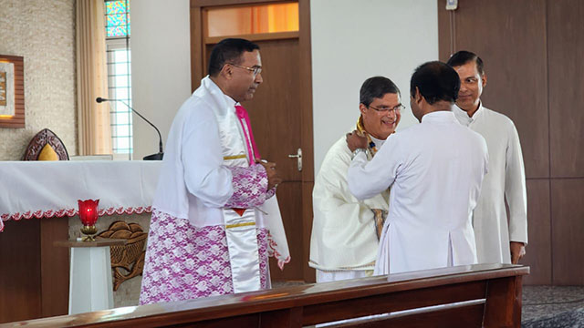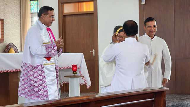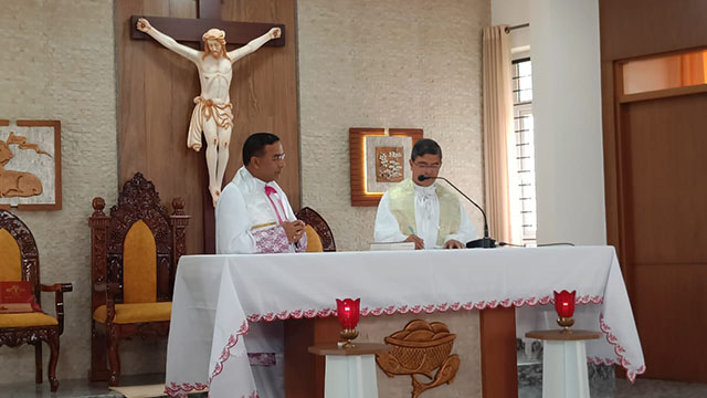 Now Bishop Duming Dias appointed Fr Stanyish Saver D'Souza as his delegate to oversee the pastoral mission of the diocese of Shimoga. On the final day of the retreat, he took the Oath of Fidelity with the profession of faith in front of the clergy of the diocese of Shimoga.