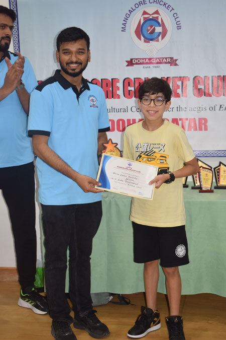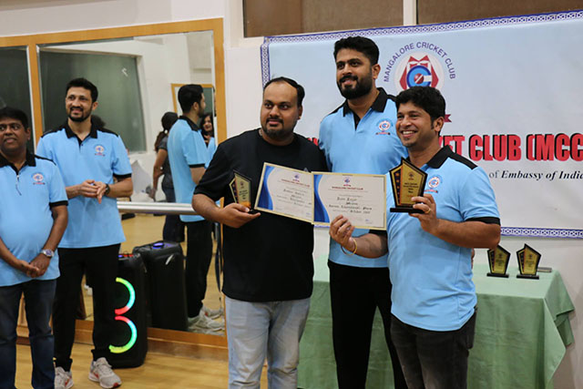 The prize distribution ceremony was led by president Denzil Christine Lobo and vice president Ryan Renjar, who presented trophies and certificates to the winners and runners-up. A special token of appreciation was presented to Khaleel Khan, carrom referee, by president Lobo in recognition of his steadfast commitment to integrity and excellence in officiating, which greatly enriched the spirit of the event.