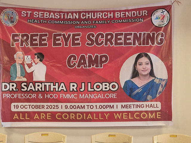 Mangaluru, Oct 20: A free eye screening camp was organized at St Sebastian Church, Bendur, on October 19. The camp was jointly conducted by the Health Commission and the Family Commission of the parish in association with Father Muller Medical College Hospital, Mangaluru.