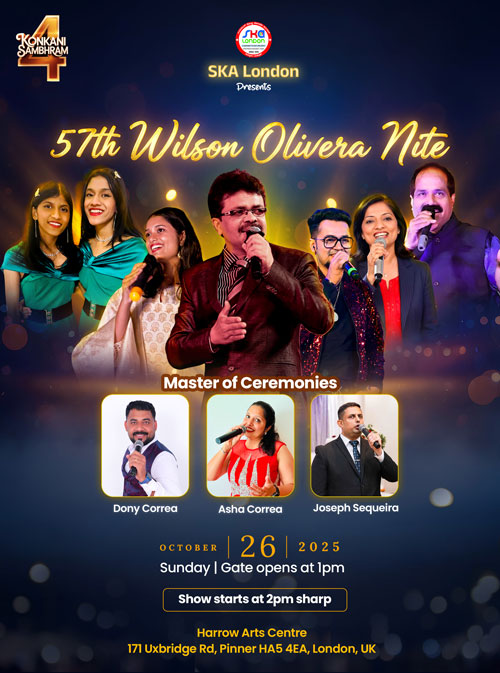 London, Oct 20: SKA London (South Kanara Association), led by Sunil D’Cunha, is all set to present ‘Konkani Sambhram 4’ on Sunday,October 26 at the prestigious Harrow Arts Centre. Gates open at 1 pm, with the event commencing at 2 pm.