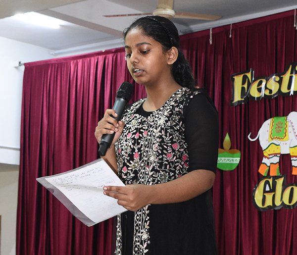 The students raised the curtains for the celebration with a devotional and melodious prayer invoking the Almighty’s blessings. In her heartwarming welcome address, Payal welcomed the chief guest -Sushmitha, faculty of the school, the principal Sr Lathika A C, vice- principal Sr Preethi A C and all the student attendees.