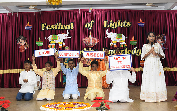 Then followed a vibrant sequence of variety entertainment presentations such as enthralling dances, melodious songs as well as a thought- provoking skit imparting the message “Light not fire crackers, but sparks of love, compassion and wisdom to dispel the darkness of hatred, anger and greed.”