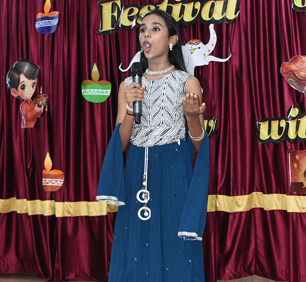 Students of grades 6B and 6C hosted a luminous program to mark Deepavali and share the message of light and hope in the world. The stage was beautifully and meaningfully adorned reflecting the spirit and significance of the festival.