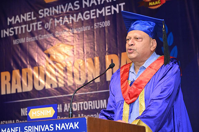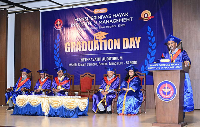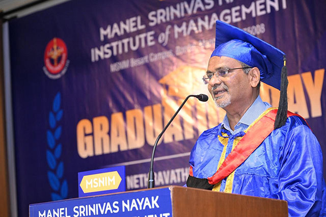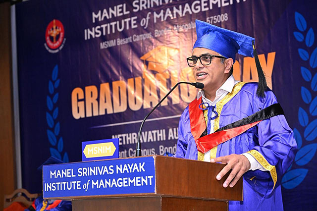 Ajith Kamath, correspondent of MSNIM, shared practical insights with the graduates. Highlighting the concept of opportunity cost, he urged students to reflect carefully before taking important life decisions. “You make the choice, and the choice makes you,” he said.