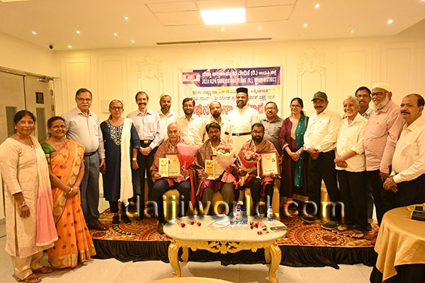 Udupi, Oct 25: The Jilla Alpa Sankhyatara Vedike, Udupi District, organised a grand felicitation ceremony on Saturday at Hotel Manipal Inn. The event was aimed to honour distinguished personalities for their outstanding contributions to community development and public service.