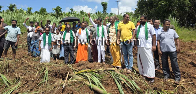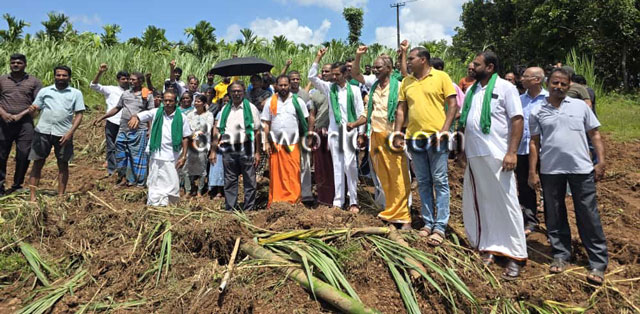 The protest was organized jointly by the villagers and the Bharatiya Kisan Sangh at the site belonging to affected farmer Bhaskar Shetty. They condemned the company’s alleged high-handedness and criticized the government’s inaction in addressing the issue.
