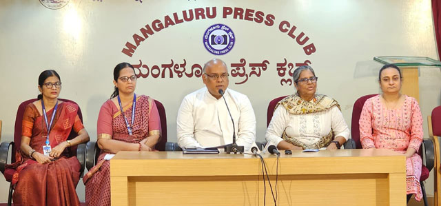 Dr Praveen Martis SJ, vice chancellor, St Aloysius [Deemed to be University ] Mangaluru; Merlin Martis, director, Development Education Service [DEEDS]; Ashitha Pinto, course coordinator, St Aloysius [Deemed to be University ] Mangaluru, and Usha Maria Periera, course coordinator, Development Education Service [DEEDS] were present at the press meet.
