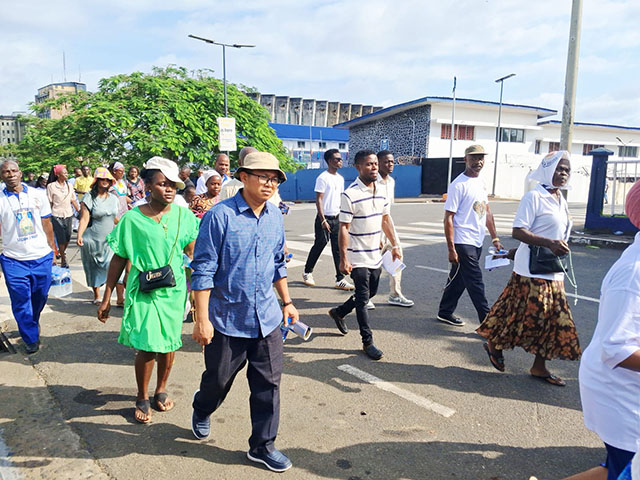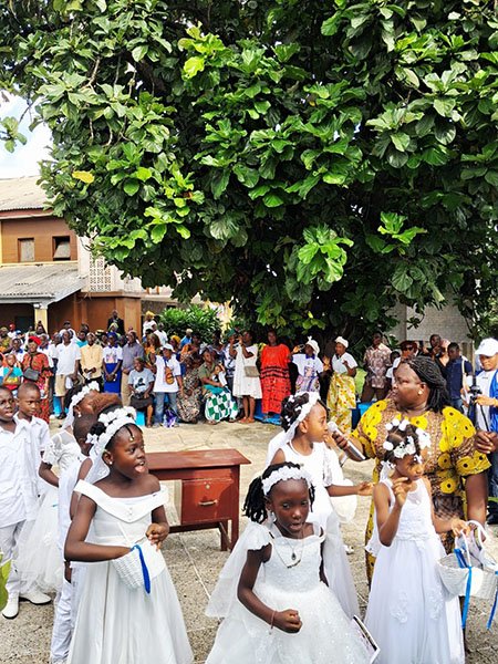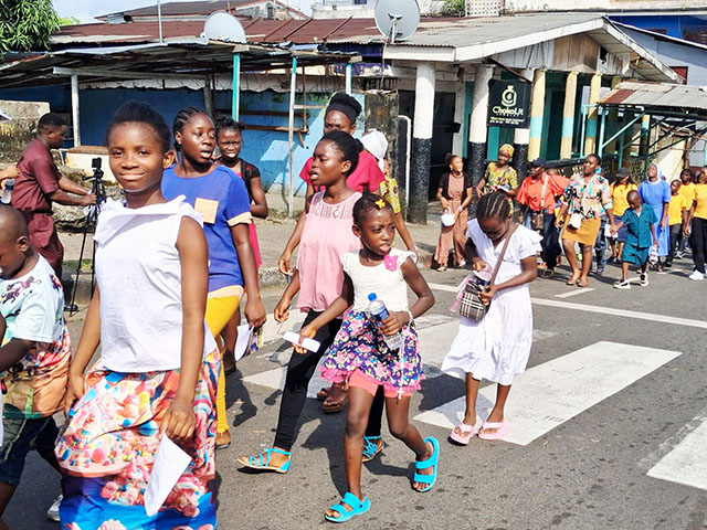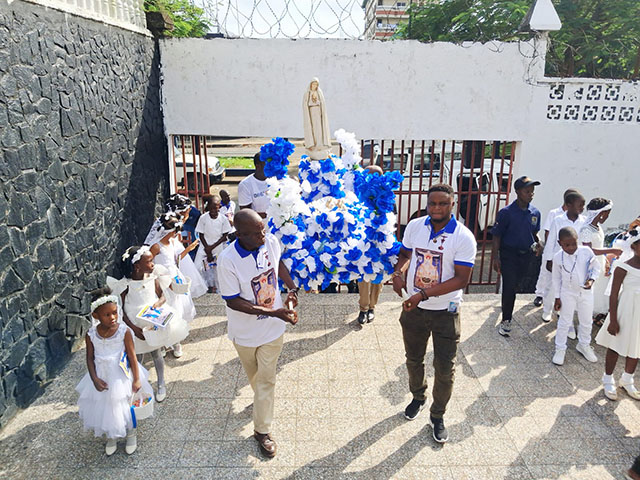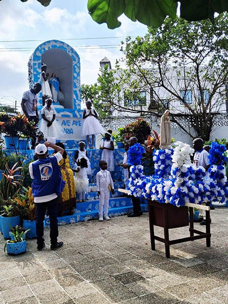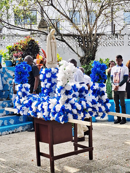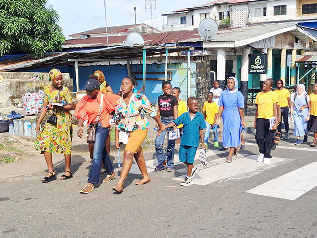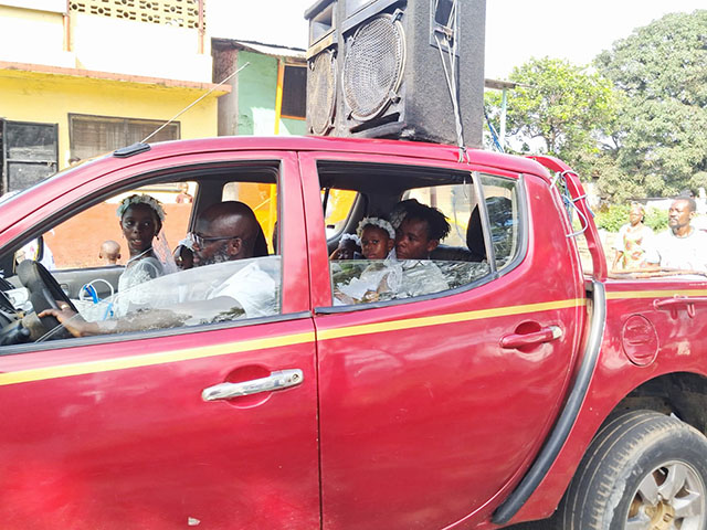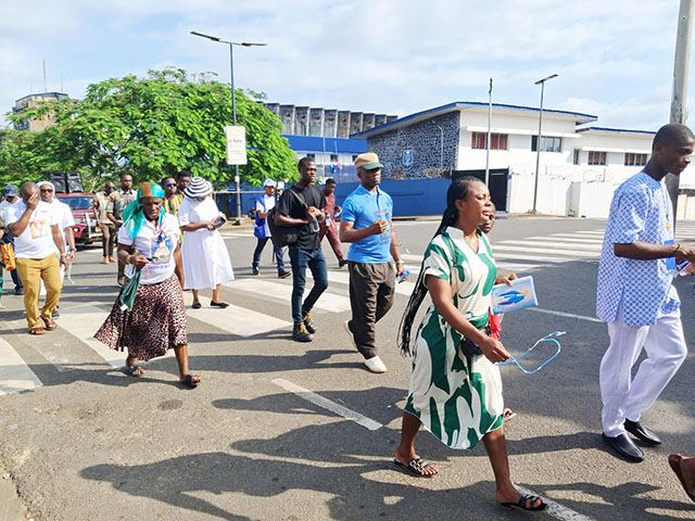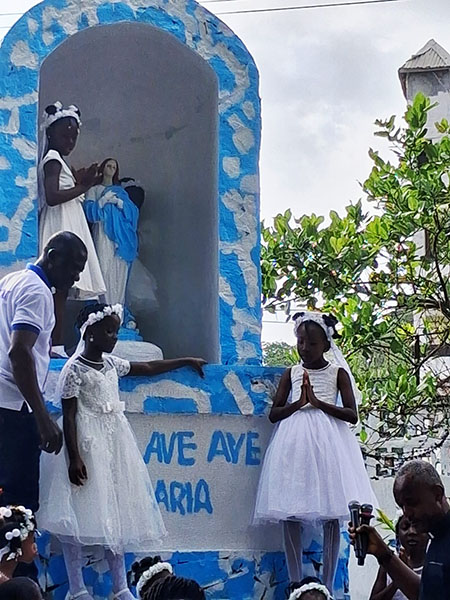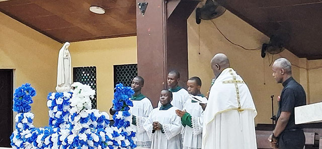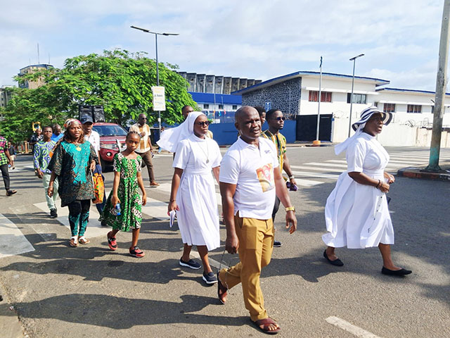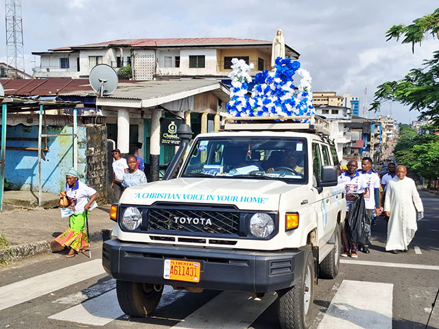 With rosaries in hand, participants prayed and sang Marian hymns as they processed reverently through the principal streets of Monrovia. The beautifully adorned statue of the Madonna, mounted on a vehicle from Radio Maria Liberia, passed through the University of Liberia campus, LNP headquarters, Capitol Bypass, Orange Liberia Technology Office, YMCA Building, and Broad Street.