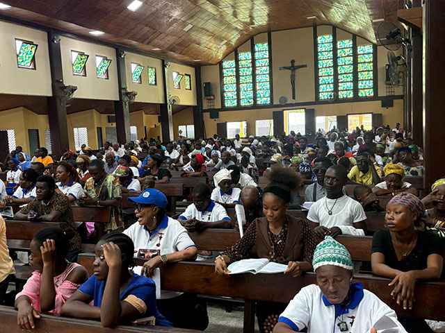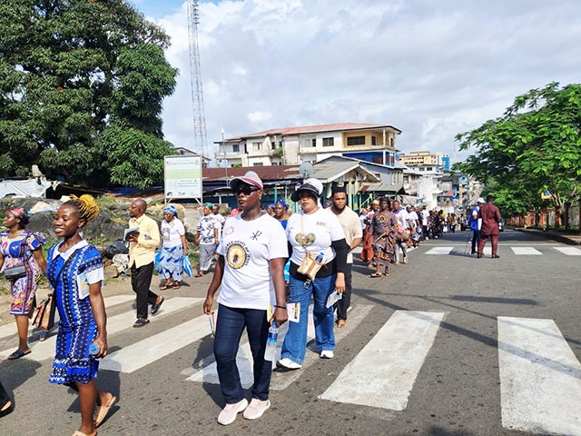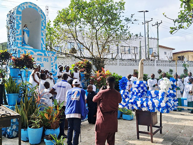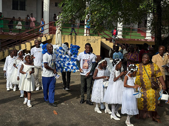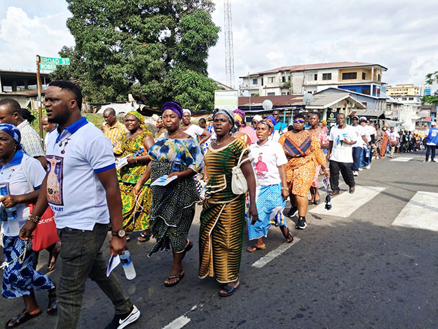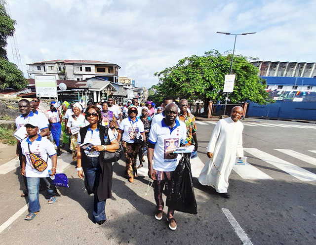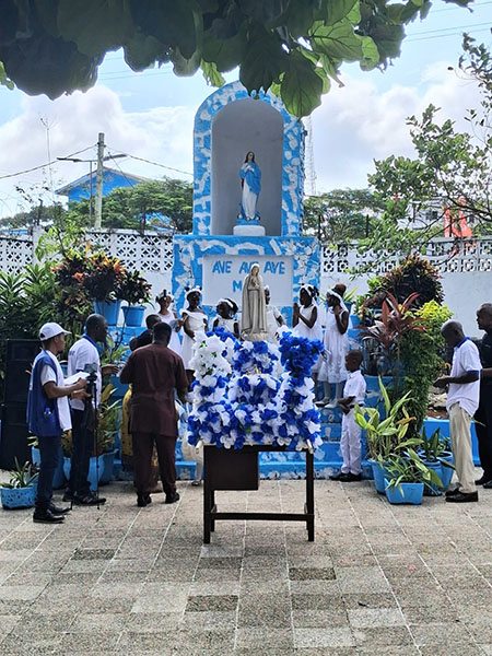 Monrovia, Oct 30: Hundreds of Catholics from across the archdiocese of Monrovia gathered in solemn devotion at the grotto of Mary Help of Christians at Our Lady of Lebanon Catholic Church for the annual Rosary procession - a seven-kilometer prayer march to the Sacred Heart Cathedral on Broad Street. The procession marked the climax of October, the month of the Holy Rosary, a period dedicated to honoring the Blessed Virgin Mary.