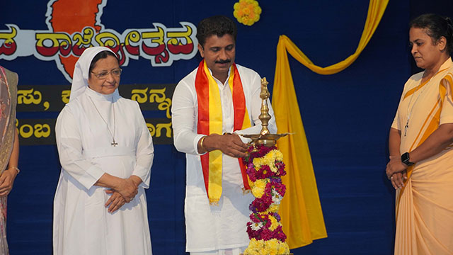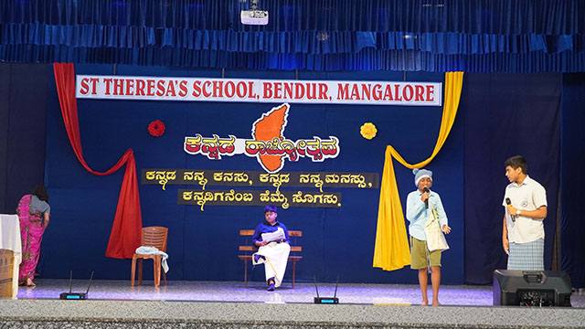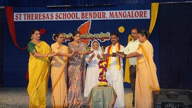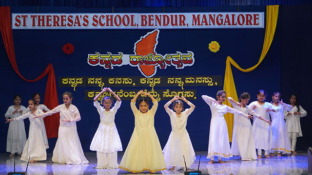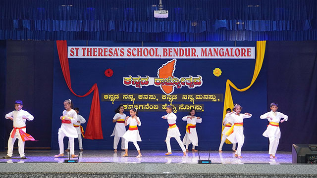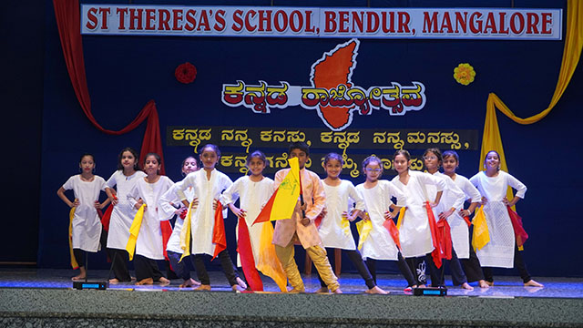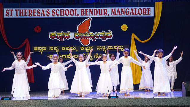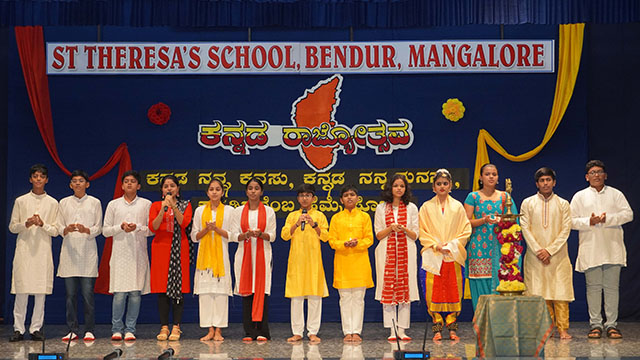 Mangaluru, Nov 1: St Theresa’s School, Bendur, celebrated Kannada Rajyotsava with great pride and enthusiasm on November 1. The students of grades IV, V, VIII, and IX presented a vibrant and meaningful programme that beautifully reflected the rich culture and heritage of Karnataka.