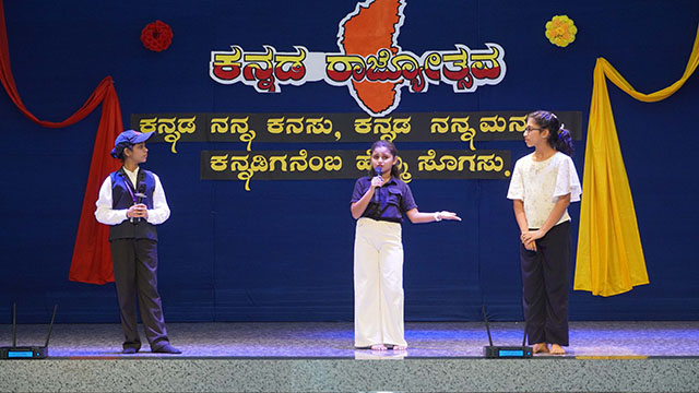 Each performance was met with enthusiastic applause as students showcased their talents with confidence and pride. The chief guest, in his address, emphasized the importance of nurturing love and respect for the Kannada language and upholding its legacy in everyday life.