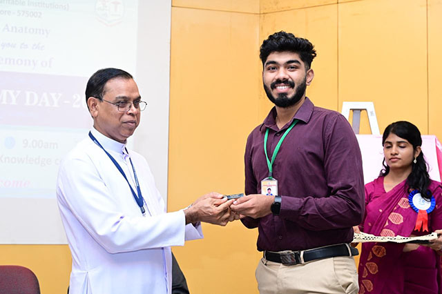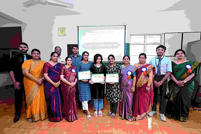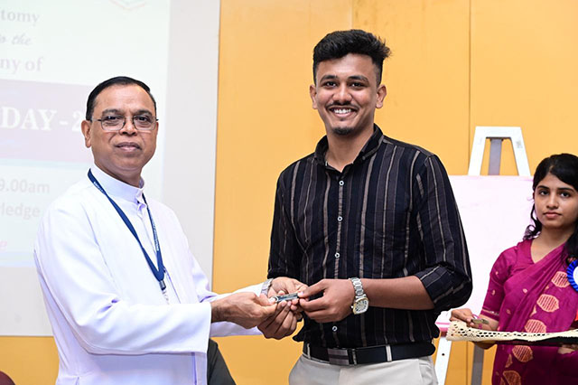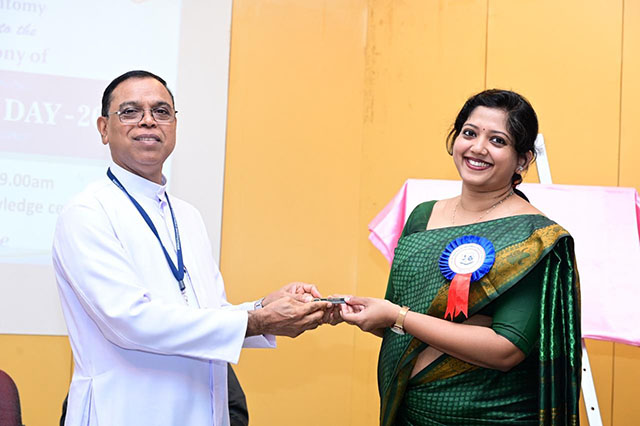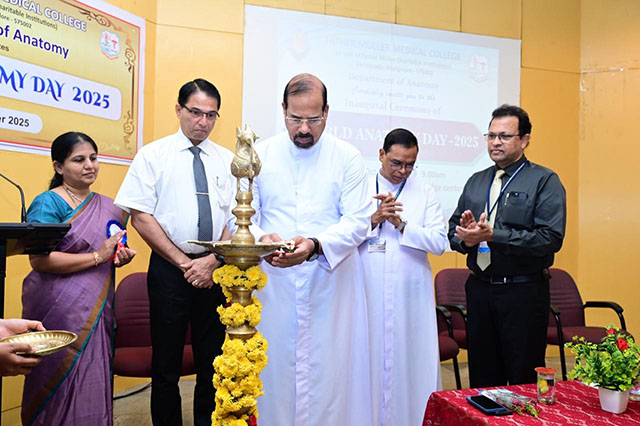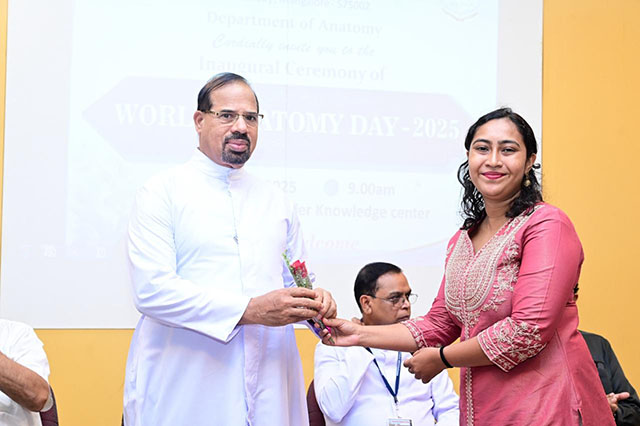 Mangaluru, Nov 1: Department of anatomy at Father Muller Medical College celebrated World Anatomy Day on October 31. The inaugural ceremony of the event was held at Knowledge Centre Hall, Central Library Building of FMCI. The programme began with a prayer setting a reverent tone for the day. The director of FMCI Fr Faustine Lucas Lobo presided over the function. Other dignitaries on the dias were the administrator of Father Muller Medical College, Dr Michael Santhumayor, dean of FMMC Dr Antony Sylvan D’Souza, vice dean of FMMC Dr Venkatesha BM and head of the department of anatomy Dr Varsha Shenoy.
