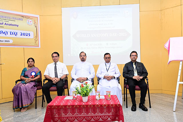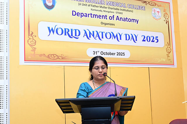 Dr Varsha Shenoy, organising chairperson and professor & head of the department of anatomy welcomed all the dignitaries and highlighted the significance of World Anatomy Day. On October 15th every year the day is celebrated to commemorate the death anniversary of Father of modern anatomy, Andreas Vesalius in 1564, who revolutionized the study of human body by his meticulous work. Dr Varsha Shenoy listed the various meaningful events initiated by the department on this significant day- First one was adding a link on 'Body Donation' on official website of FMCI, which went live on October 15. This initiative aims to promote awareness and facilitate the noble act of body donation for medical education and research.