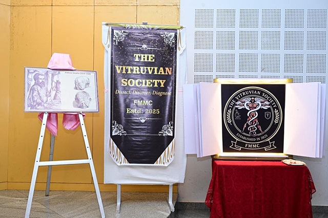 Second event was “Pencil Pulse”– a pencil sketch competition open to the undergraduate and postgraduate students of FMCI and third event was official induction of anatomy club for the students of FMMC- the Vitruvian Society. Following this, the president along with other dignitaries inaugurated the various events and Dr Pallavi, associate professor, anatomy compered the activities beautifully.