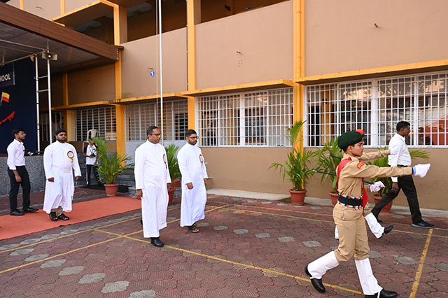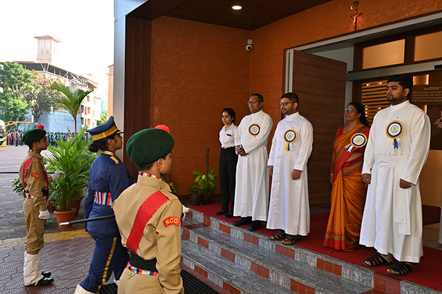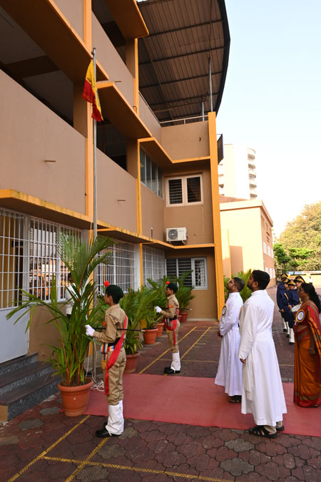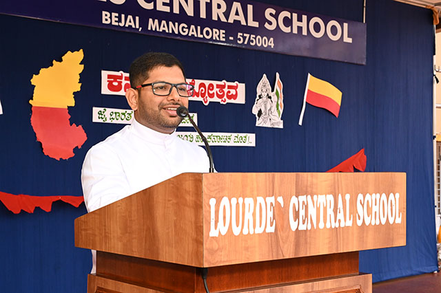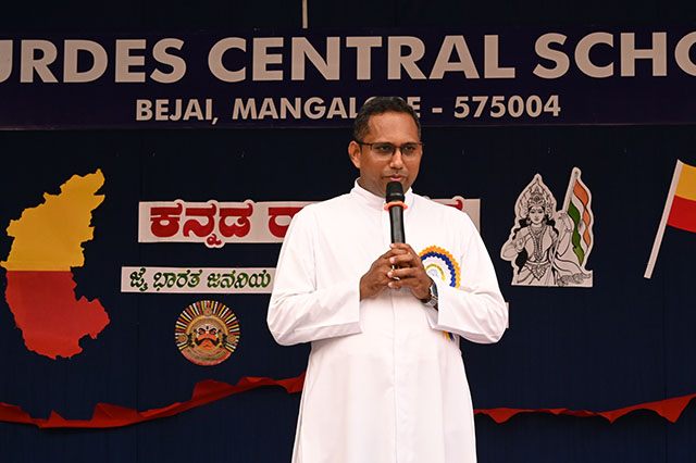 The programme graced by the presence of Fr Norman Mathias, assistant parish priest, Bejai parish as the chief guest, along with principal Fr Johnson L Sequeira and vice principal Anita Thomas. The celebration commenced with the hoisting of the tricolor flag, followed by the unfurling of the Karnataka state flag. The event was marked with patriotic fervor as the Karnataka state anthem was sung. This symbolic ceremony set the tone for the celebration, highlighting the states pride and unity.