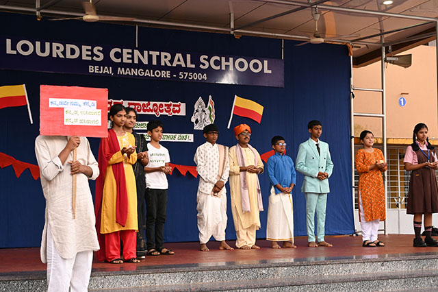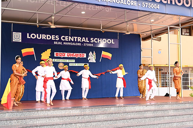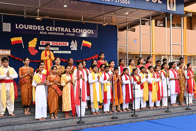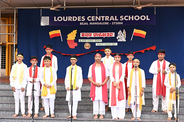 Mangaluru, Nov 2: Lourdes central school celebrated Kannada Rajyotsava on November 1, with great enthusiasm on the school grounds. Kannada Rajyotsava also known as Karnataka Formation Day is celebrated to commemorate the formation of the state of Karnataka.