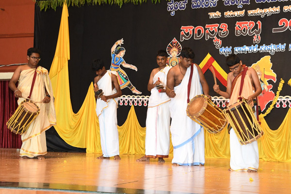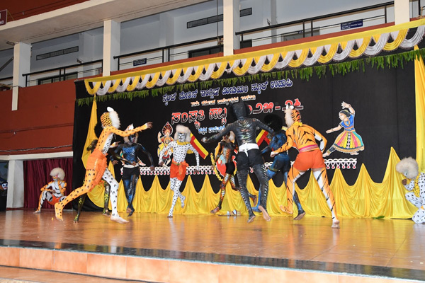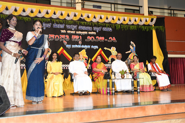 The programme was uniquely inaugurated by unfurling the auspicious areca palm flower. Vidushi Veena Samaga was felicitated in recognition of her outstanding contributions to classical music and dance. Vinay, Kannada teacher, read out the certificate of felicitation.