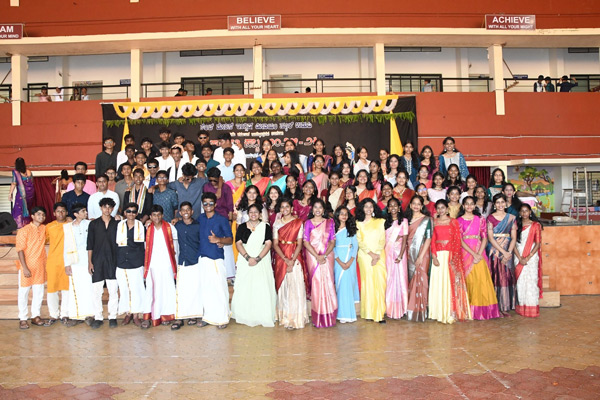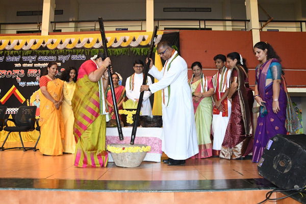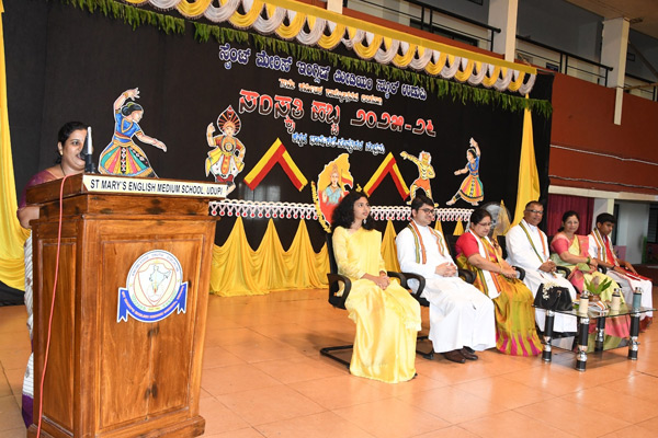In her guest speech, Vidushi Veena Samaga lauded the cultural diversity of Karnataka and admired the values of love, peace, and harmony that are intricately woven into the fabric of Kannada culture. The correspondent, Fr Charles Menezes, in his presidential address, emphasized the importance of connecting the young generation with our traditional values.