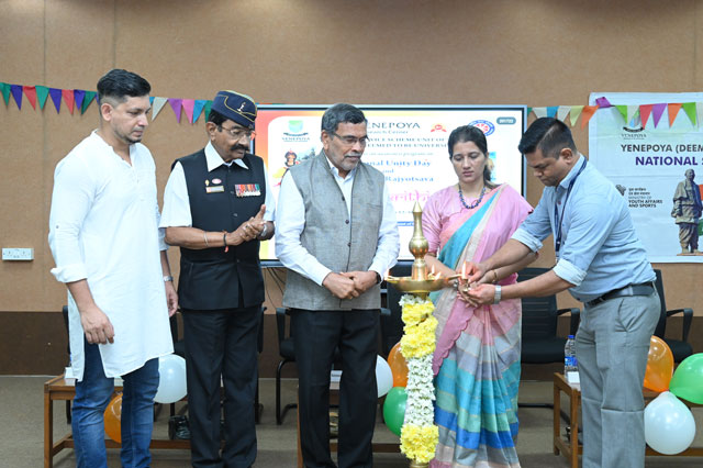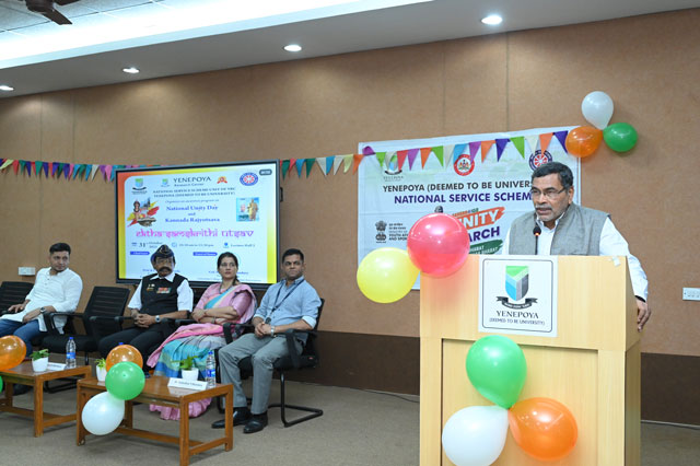 Mangaluru, Nov 3: The National Service Scheme (NSS), Yenepoya Research Centre (YRC) Unit of Yenepoya (Deemed to be University) organized Ektha Samskrithi Utsav, an awareness initiative to commemorate National Ektha Diwas and Kannada Rajyotsava, celebrating the spirit of oneness and the richness of our cultural heritage. This initiative aligned with the United Nations Sustainable Development Goals, promoting education (SDG 4), heritage and community preservation (SDG 11), peaceful communities (SDG 10, SDG 16) and collaborative national progress (SDG 17) paving the way for a harmonious, culturally vibrant, and sustainable future.