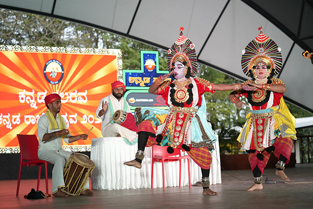 The cultural segment witnessed an enthralling Yakshagana performance by the Yaksha Sambhrama Art Troupe and energetic Dollu Kunita and Huli Vesha (Tiger Dance) by Dollu Chandru and team, showcasing the harmony of classical and folk-art forms of Karnataka.