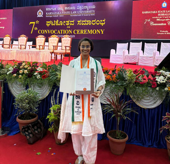 Ancita Olivia Pinto receives convocation honour for securing 10th rank in KSLU exam