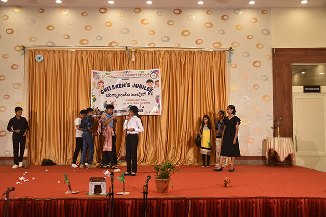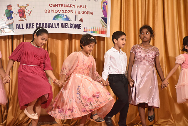 The cultural and felicitation programme began in the Centenary Hall. The programme opened with a prayer song rendered melodiously by the catechism teachers, creating a prayerful ambience. Melreena Sequeira (9th Std) welcomed the priests, teachers, parents, and children.