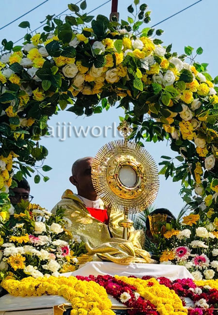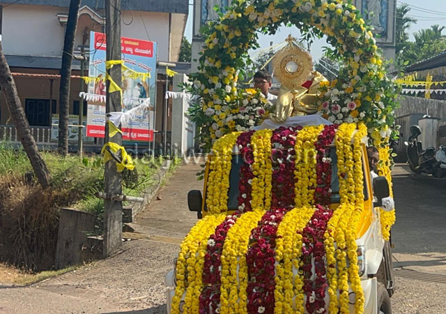 Fr Victor D’Souza, a native priest of Surikumeru church, also participated in the Holy Mass. After the Mass, a grand Eucharistic procession was held from the church to Surikumeru Junction.