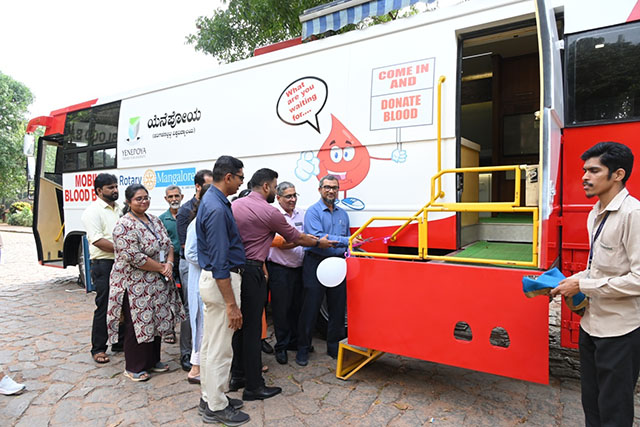 Mangaluru, Nov 11: Yenepoya Hospital Blood Centre, proudly announces the reintroduction of its mobile blood donation bus, which was handed over by Rotary Mangaluru to Yenepoya Hospital Blood Centre in September 2023, now upgraded with modern features to enhance donor experience, safety, and outreach.