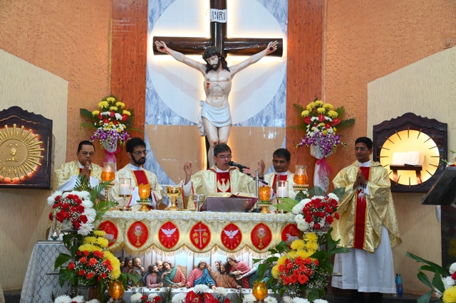 The Triduum began with the flag hoisting ceremony, followed by the Holy Mass celebrated by Fr Richard Anil, parish priest of St Joseph’s Church, Sagar. On the second day, the Holy Mass was offered by Fr Martin Rodrigues, and on the third day, the faithful participated in the Sacrament of Reconciliation, followed by Mass celebrated by Fr Lawrence D’Souza, parish priest of Kargal.