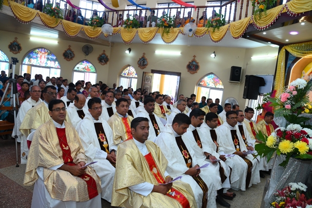 The festal Mass on November 11 was solemnly celebrated at 10:30 am by Msgr Stany D’Souza, the delegate of the Apostolic Administrator of the Diocese of Shimoga, concelebrated by about 40 priests. More than 1500 faithful participated in the celebration with deep faith and enthusiasm.
