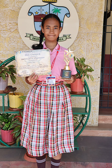 In another proud achievement, Reishan Maria Fernandes of grade VIII D secured the second place in the Kannada creative writing competition organised by the Rajya Bala Bhavana Society, Bengaluru, in collaboration with the Dakshina Kannada Jilla Bala Bhavana Samithi and the Department of Women and Child Welfare, Dakshina Kannada, as part of the Children’s Day celebrations. Her creative expression and linguistic flair earned her high appreciation from the judges and audience alike.