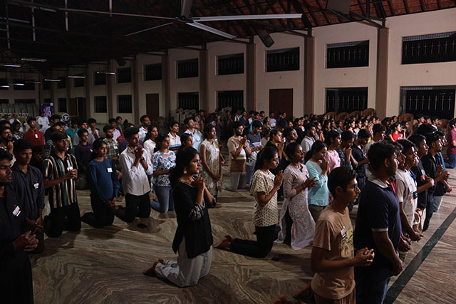 The evening continued with hymns by the Echoes of Zion band, creating a prayerful atmosphere. This was followed by the Way of Adoration led by Fr Abraham, during which the youth, holding lighted candles, walked through three stations, offering prayers for those struggling with addictions, health issues, and personal challenges. Special prayers were offered to St Carlo Acutis, seeking his intercession for the youth. Fr Abraham was honoured for providing the Divine Retreat Centre and for guiding the youth in adoration.
