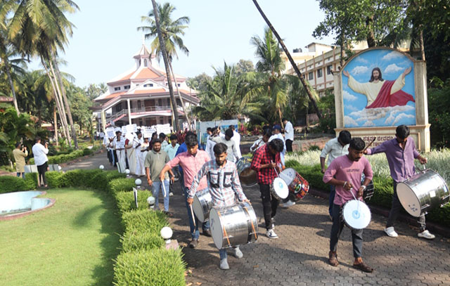The second day began with a solemn Holy Mass celebrated by Fr Praveen D’Souza. The youth participated actively in the Holy Mass. Following the Mass, a Peace Rally was flagged off by the police force head constable, Joyce Dsouza. Youth participants marched holding placards with messages of peace and unity.