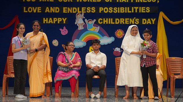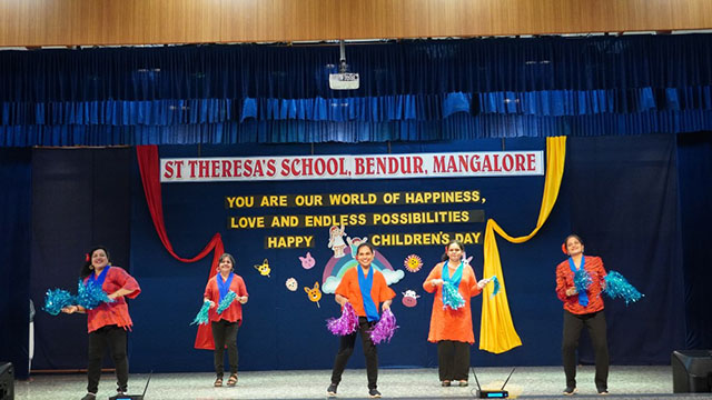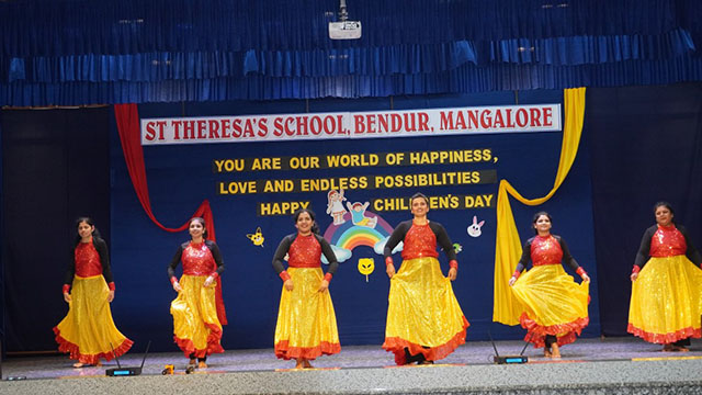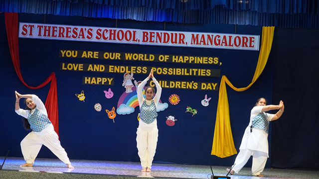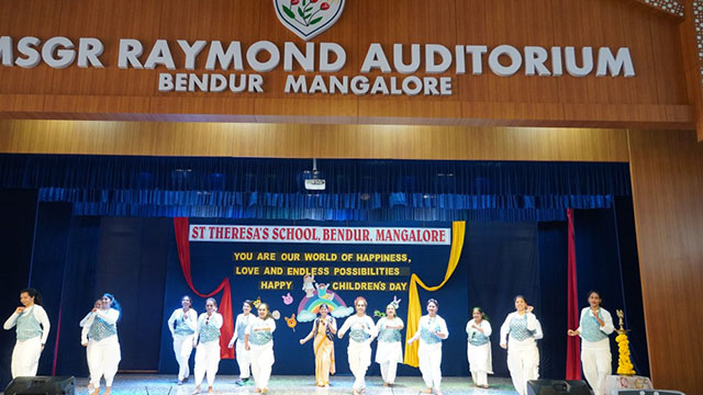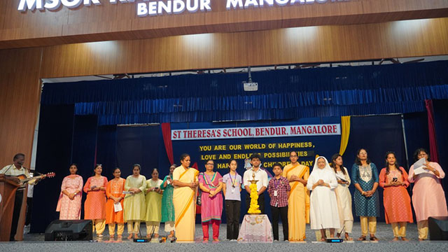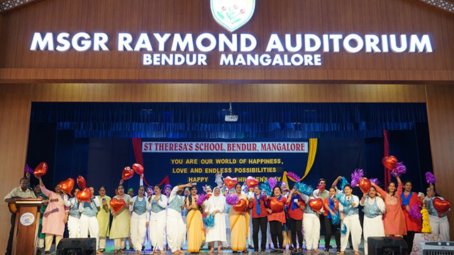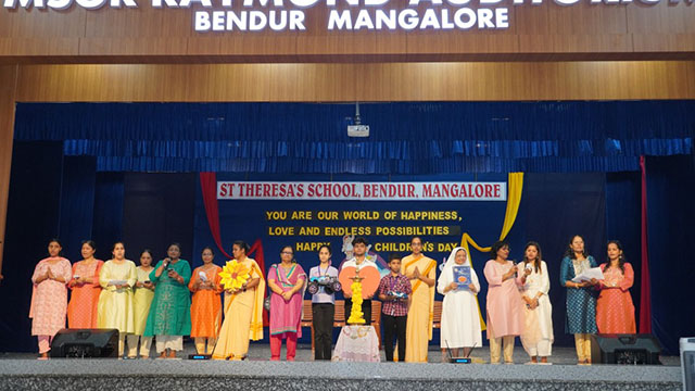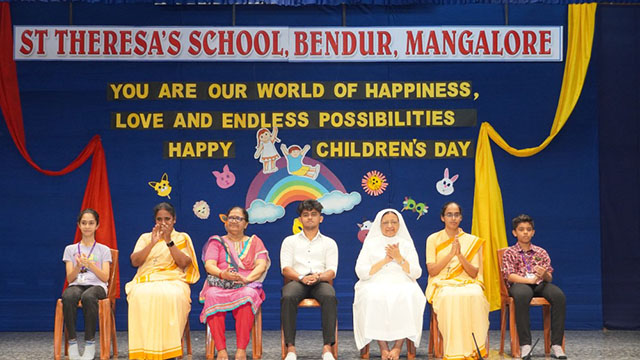 Mangaluru, Nov 14: St Theresa’s School marked Children’s Day on the November 14 in the school auditorium with vibrancy and joy, presenting a programme filled with inspiring messages, cultural performances, and the presence of distinguished guests. The celebration was graced by Sr Shaila, Correspondent of the School; Sr Lourdes, principal; and Avniel Savio D’Souza, an alumnus and international powerlifting champion.