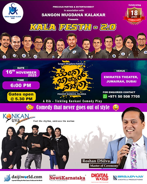 Dubai, Nov 14: In a proud moment for the Konkani cultural fraternity in the UAE, Sangon Mugdana Kalakar (SMK), on the occasion of its 18th anniversary, has announced that its much-awaited cultural extravaganza, Kala Festh 2.0, has achieved housefull status through record advance bookings.