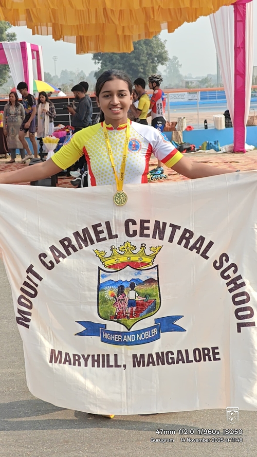 Mangaluru, Nov 18: Mount Carmel Central School, Mangaluru, is celebrating the stellar achievement of Grade IX student Jesnia Correa, who has once again clinched a gold medal at the CBSE National Skating Championship 2025.