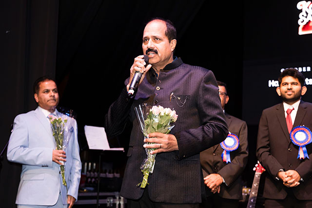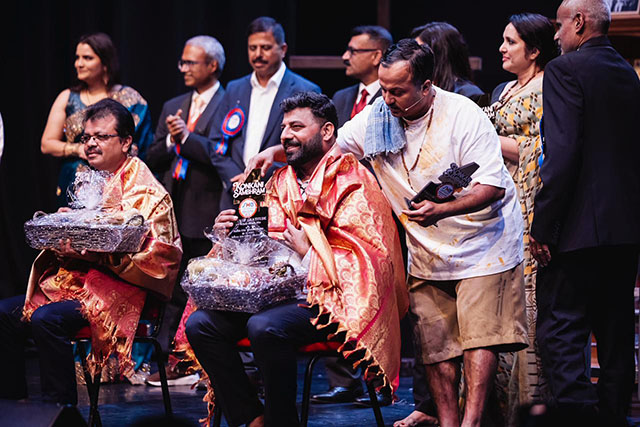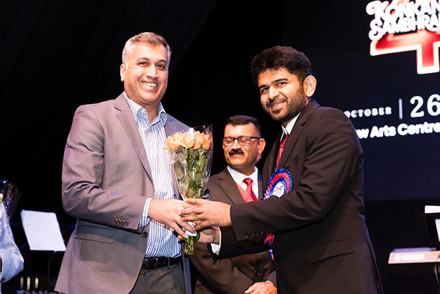 At the end of the event, Wilson Olivera and Dony Correa were felicitated by Sunil D'Cunha and chief guest Joseph Mathias for their tremendous efforts in presenting Konkani Sambram 4. A delicious Mangalorean traditional dinner was served to all attendees to conclude the evening.
