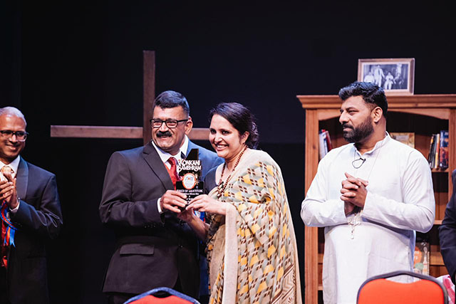 The second session of Konkani Sambram 4 featured the classic masterpiece Hando Utla, one of Chafra’s most acclaimed dramas. The troupe of amateur artistes from Dubai, under the leadership of Dony Correa, mesmerised the audience with their powerful and brilliant acting skills. Renowned actors including Godwin Castelino, Rohan Kalakul, Cynthia Mendonca, and Asha Correa delivered outstanding performances, their dialogue delivery marked by ease and flawless precision. The drama was directed by Dony Correa, with music designed by Rohan Kalakul. Deona Correa and Delisha Correa assisted with music and light design, while Ashok Almeida provided backstage support. The drama carved a niche in the hearts of everyone present at the Harrow Arts Centre. Continuous applause and roars of laughter proved its immense success among the crowd. Dony Correa and his team were warmly applauded and appreciated.