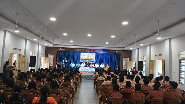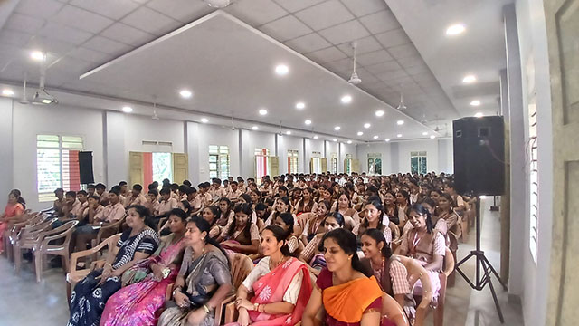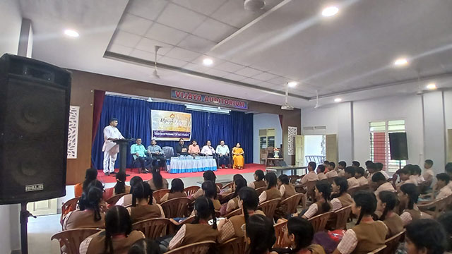 While Kumari Varshini, Kumari Kavya and Kumari Inchara, PU II Year students recited the prayer, Kumari Preethi, II PUC welcomed the dignitaries and students. Kumari Niriksha introduced the guests.