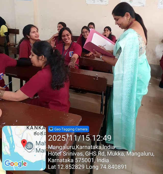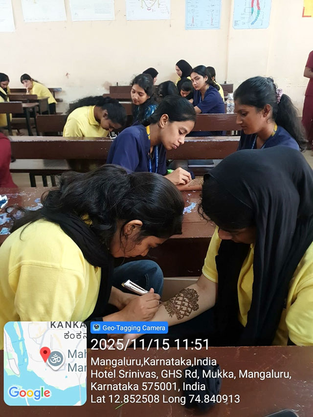 Mangaluru, Nov 21: A beautifully organised mehendi competition was held at Srinivas University Institute of Physiotherapy on November 15, showcasing the artistic talents and cultural creativity of the students. The event aimed to encourage traditional art forms while providing a platform for students to express their imagination through intricate mehendi designs.