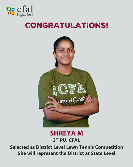 In lawn tennis, Shreya M, a 2nd PU student, clinched 1st place at the district level event organised by the PU department on September 19 held at Mangala Stadium in Mangaluru.