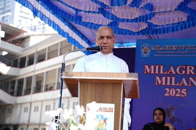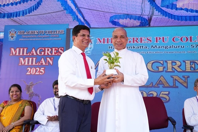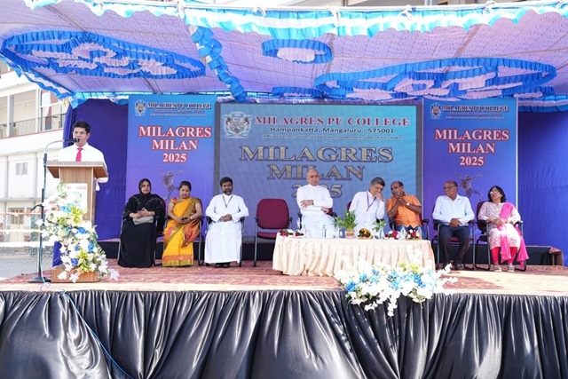 Speaking on the occasion, Aravind Bolar said that Milagres College is one of the prominent institutions in Mangaluru city, and organizing a meaningful program like Milagres Milan in such a historic institution to showcase the talents of school children is truly commendable. He appreciated the efforts of the Milagres Pre- University College for encouraging students’ talents in culture and sports and extended his best wishes. The event was held under the leadership of Melwin Vas, principal, Milagres PU College, and the staff.