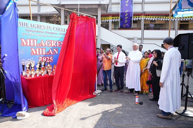 Mangaluru, Nov 24: “Milagres Milan–2025,” an inter-school talent show competition, was held on November 20 at Milagres PU College, Hampanakatta. Hundreds of students from various high schools across Mangaluru city and Dakshina Kannada district enthusiastically participated in the event. The program was inaugurated by renowned comedy actor Mr. Aravind Bolar.