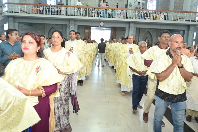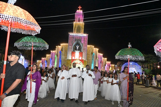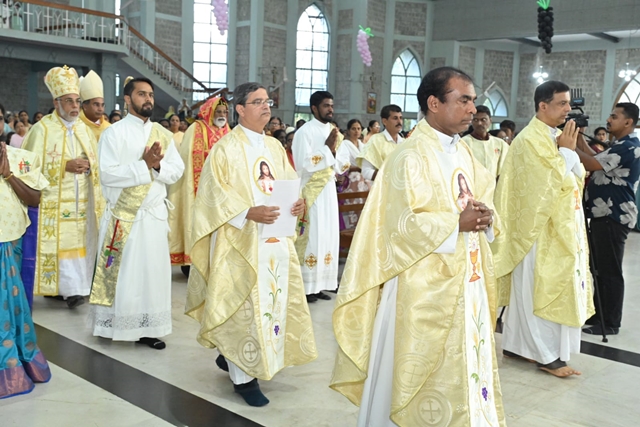 The liturgy and procession were meticulously organised by Fr Stany D'Souza, dean of Mount Carmel deanery and parish priest of Sacred Heart Cathedral, in collaboration with Fr George K A, dean of Little Flower Deanery, Fr Ronald D'Cunha, dean of Holy Family Deanery, Fr Roman Pinto, dean of vianney deanery, deanery priests, religious, and the faithful.