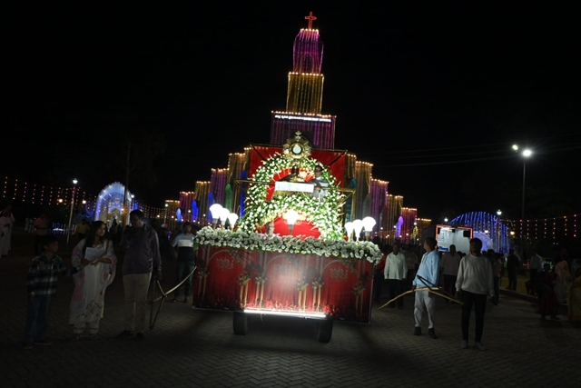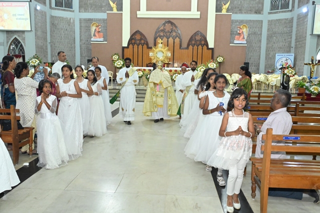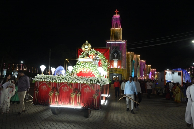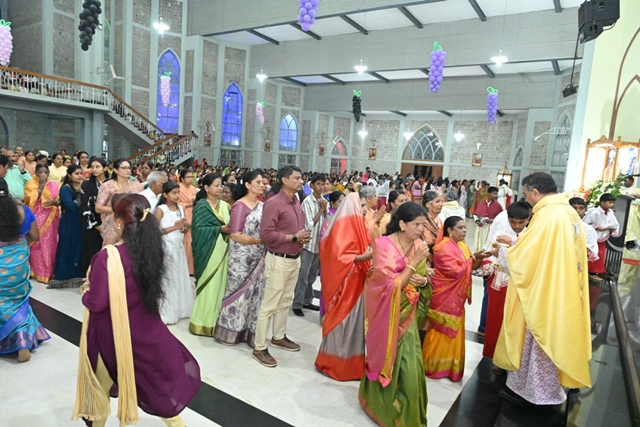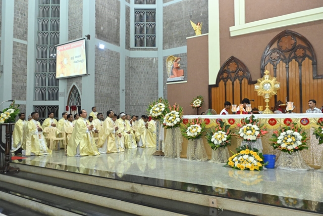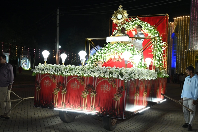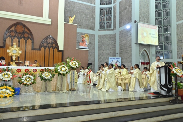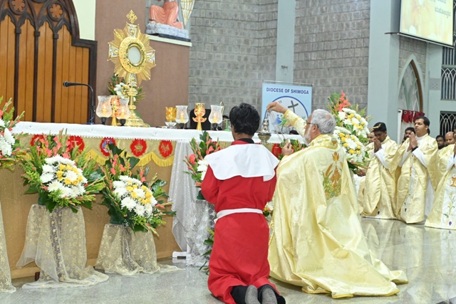 After the Mass, a eucharistic procession was organised in the streets of Shivamogga. The faithful prayed the Rosary, sang hymns for Christ the King, and publicly honored the Lord Jesus Christ. Benediction was held in the church. Bishop Joseph Arumachadath carried the Eucharistic Lord throughout the procession.