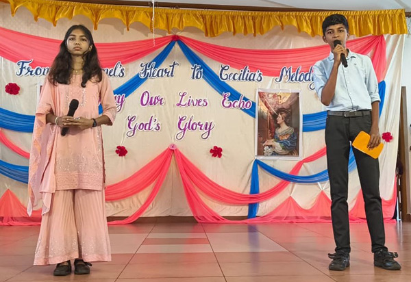 Students of grades 3A and B joined in hosting the programme. They made the celebration enjoyable with their mesmerising dances, musical skit and innocent narratives highlighting the glorious life of the school's patron saint- St Cecilia.