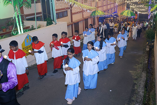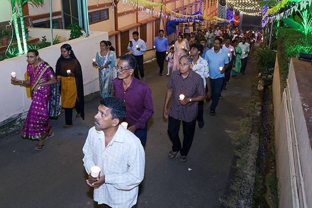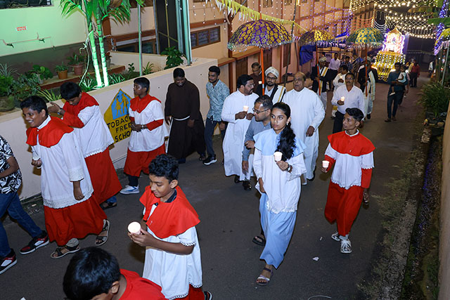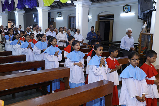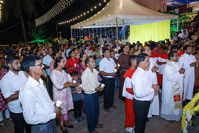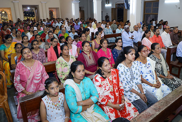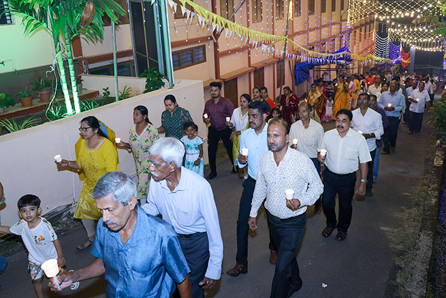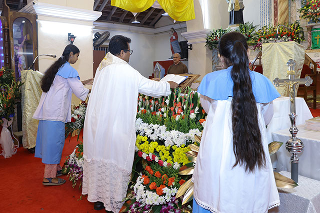 Fr Vincent Dsouza, director of CODP Mangalore, proclaimed the word of god and led the Vespers ceremony. He was joined by the parish priest, Fr William Menezes, resident priest Fr Victor D’Souza, and several other concelebrating priests. The church choir added solemnity to the service with melodious renditions of the psalms.