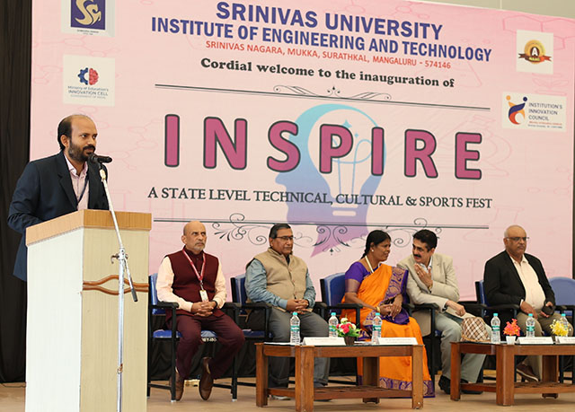 Dr A Srinivas Rao, hon’ble pro-chancellor of Srinivas University, presided over the programme. Distinguished guests on the dais included Dr K Satyanarayana Reddy (vice-chancellor), Dr Anil Kumar (registrar), Dr Ramakrishna N Hegde (dean, SUIET Mukka), and Prof Vishwas C Shetty (convenor of INSPIRE-25).