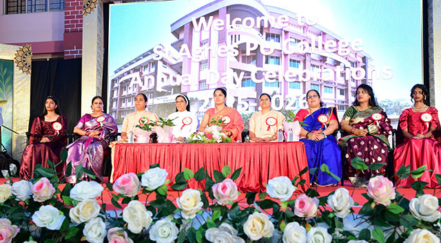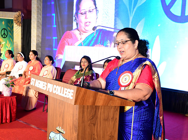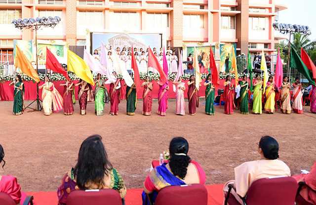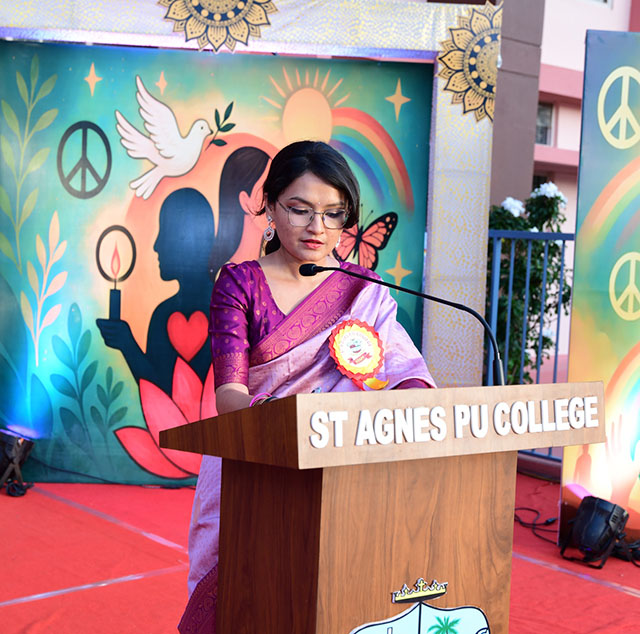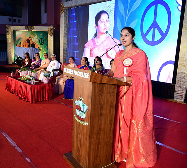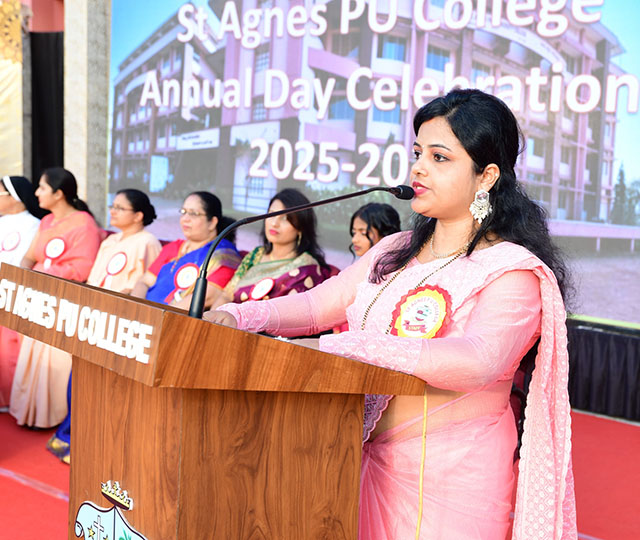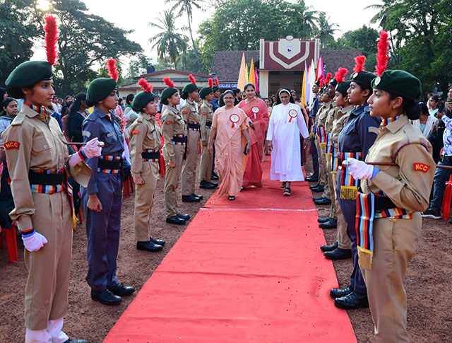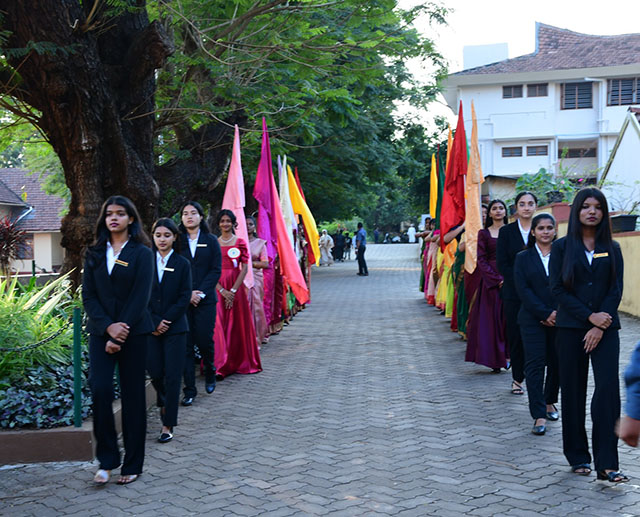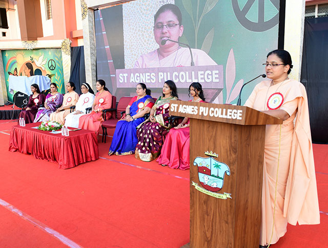 Mangaluru, Nov 26: The College Day celebration of St Agnes PU College was held with splendour and enthusiasm on November 25 on the college grounds. The distinguished chief guest, wing commander Preeth D’Souza; president of the programme and joint secretary of St Agnes Institutions Sr Dr Maria Roopa; the principal- Sr Norine D’Souza; the vice principal- Sr Janet Sequeira; PTA vice president- Shabnum; PTA joint secretary - Lavina Sequeira, along with PTA executive committee members and other dignitaries, were accorded a warm and ceremonial welcome, accompanied by the guard of honour and a stirring band salute, as they proceeded in a majestic and dignified march towards the dais.