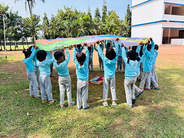 Budding plants (Jr KG): Parachute play promoted teamwork, cooperation, and joy among learners.